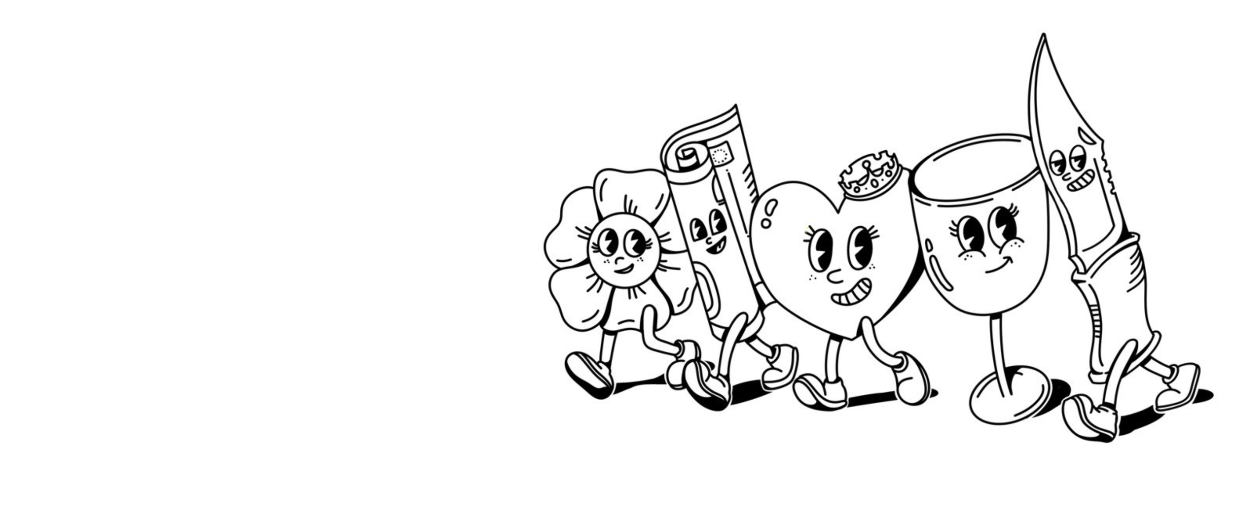 Visually, the work draws from classic rubber-hose era cartoons, reinterpreted through a contemporary lens. Rounded forms, expressive faces, and simplified lines create an inviting aesthetic that feels nostalgic yet current. The intention was to design something disarmingly sweet—an image that communicates on multiple levels: instantly appealing on the surface, but layered with meaning for those who know the story behind it.